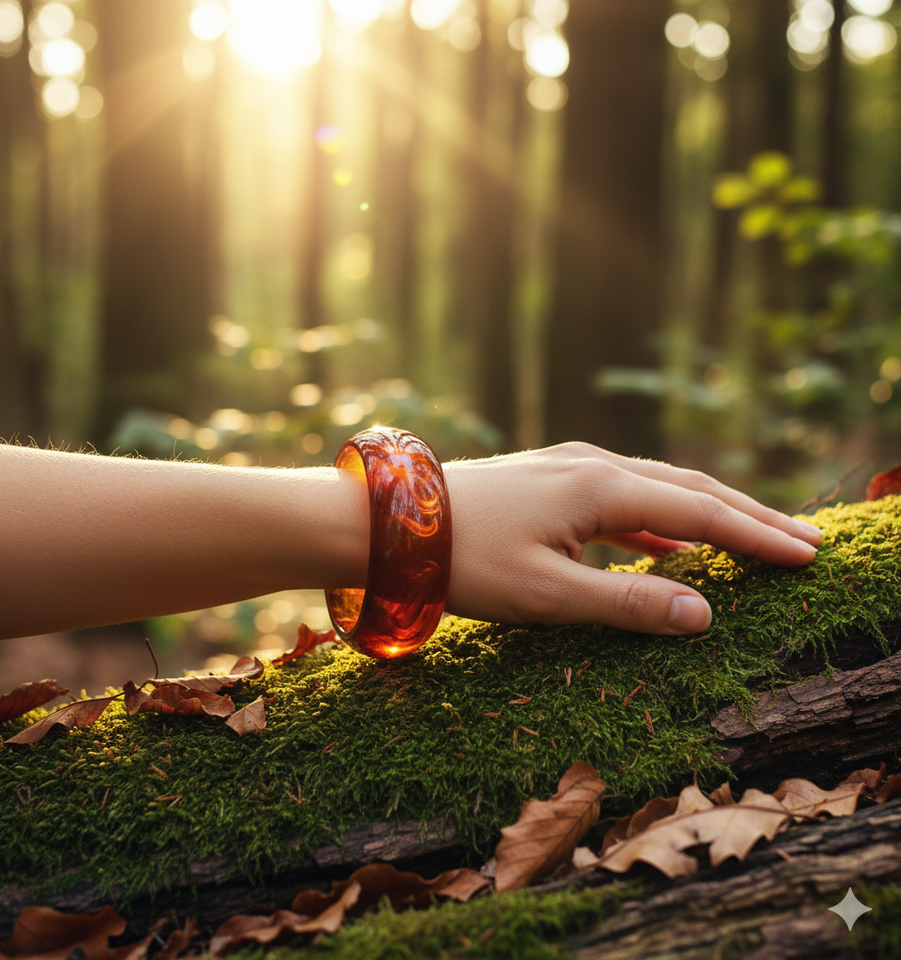 Add a warm touch of elegance to your style with the AmberGlow Classic Resin Bangle by Dass For Life.