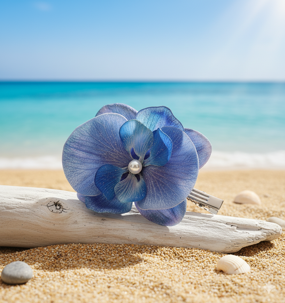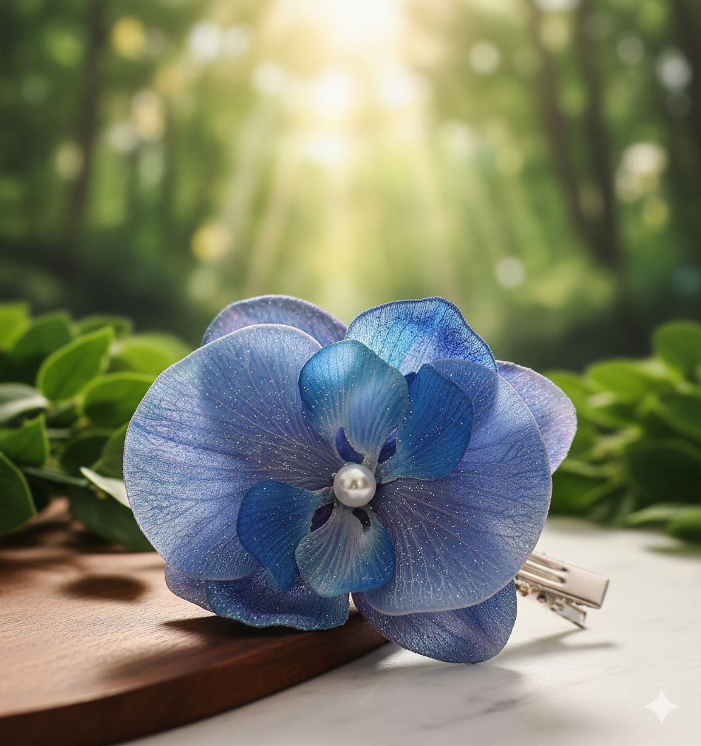 This exquisite hair accessory from Daas For Life features a beautifully crafted blue orchid with delicate translucent petals that shimmer with subtle highlights. The orchid is accented at its center with a single pearl, adding a refined touch of elegance. Perfect for elevating any hairstyle for special occasions or daily grace, the Elegant Blue Orchid Hair Clip embodies natural beauty and sophisticated design, capturing Daas For Life’s commitment to artistry and timeless charm.