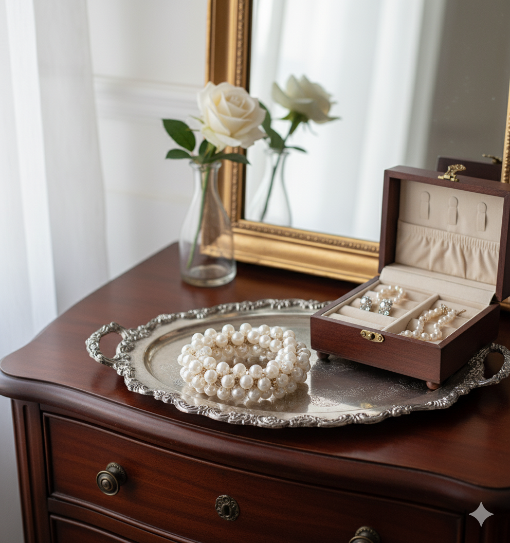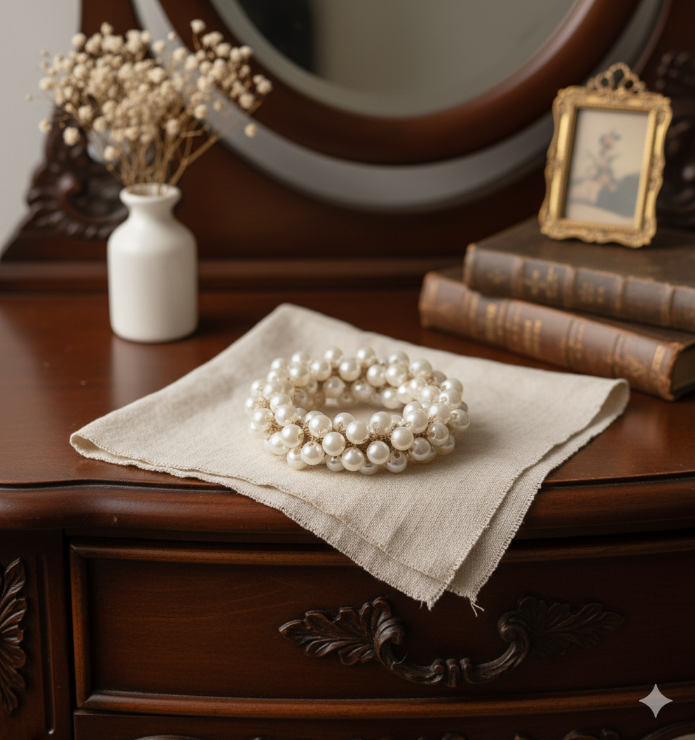 This glamorous scrunchie from Daas For Life is crafted from a cluster of lustrous faux pearls intricately strung together to form a plush, eye-catching accessory. The Pearl Luxe Statement Scrunchie instantly elevates any hairstyle—wear it in a chic ponytail, bun, or as a bracelet for a sophisticated touch. Its timeless elegance and radiant shine make it perfect for weddings, celebrations, or turning everyday moments into stylish occasions, reflecting Daas For Life’s love for classic beauty with a modern twist.