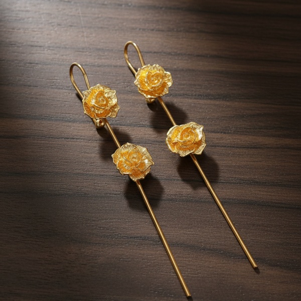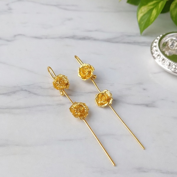 Experience timeless elegance with the Royal Bloom Layered Ear Cuff by Daas For Life. Designed with exquisite detailing, this ear cuff features beautifully sculpted golden roses arranged in a cascading, double-layered style. Each rose is crafted with fine texture and depth, adding a rich, luxurious charm to the piece.
