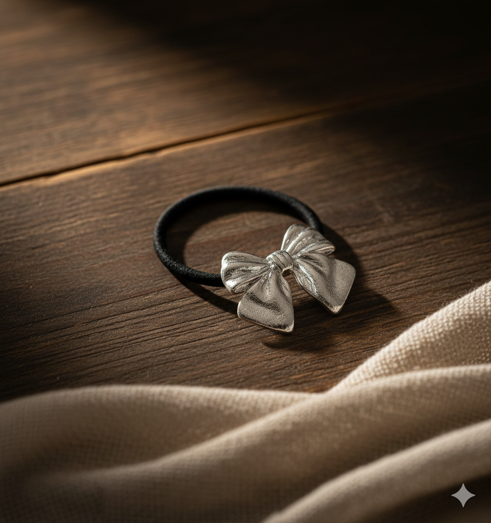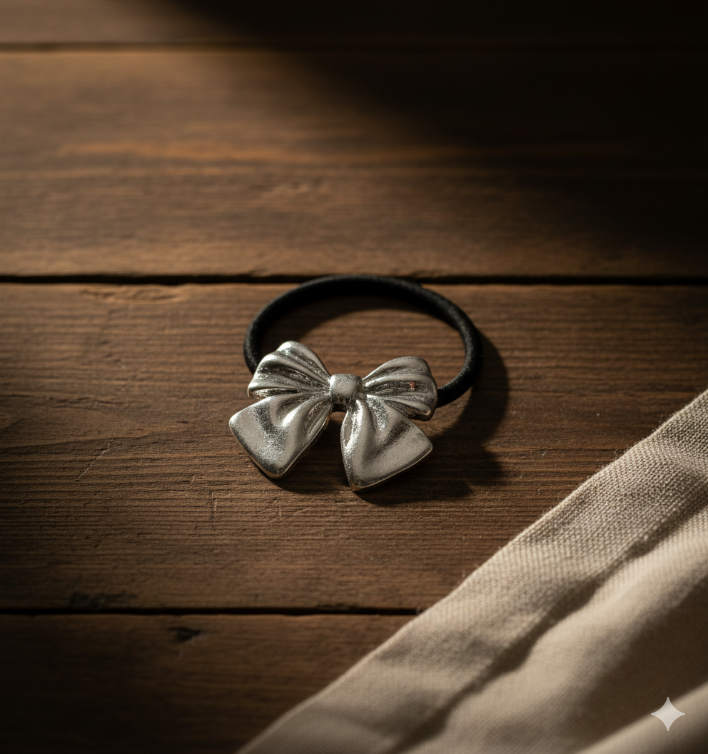 This chic hair accessory from Daas For Life features a beautifully textured silver-tone bow as its centerpiece, paired with a sleek black elastic band. The sculpted bow adds a touch of classic glamour and sophistication, making even simple hairstyles feel special. Lightweight and versatile, the Silvery Bow Grace Hair Tie blends playful design with refined elegance—perfect for everyday wear or dressing up any look with a dash of charm.